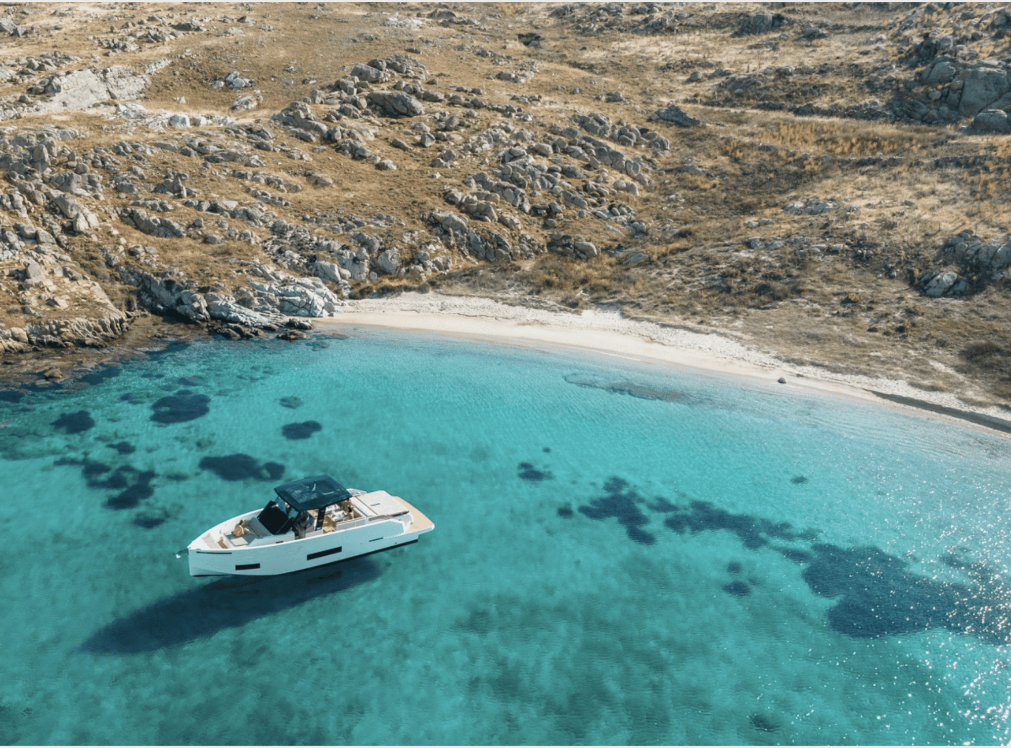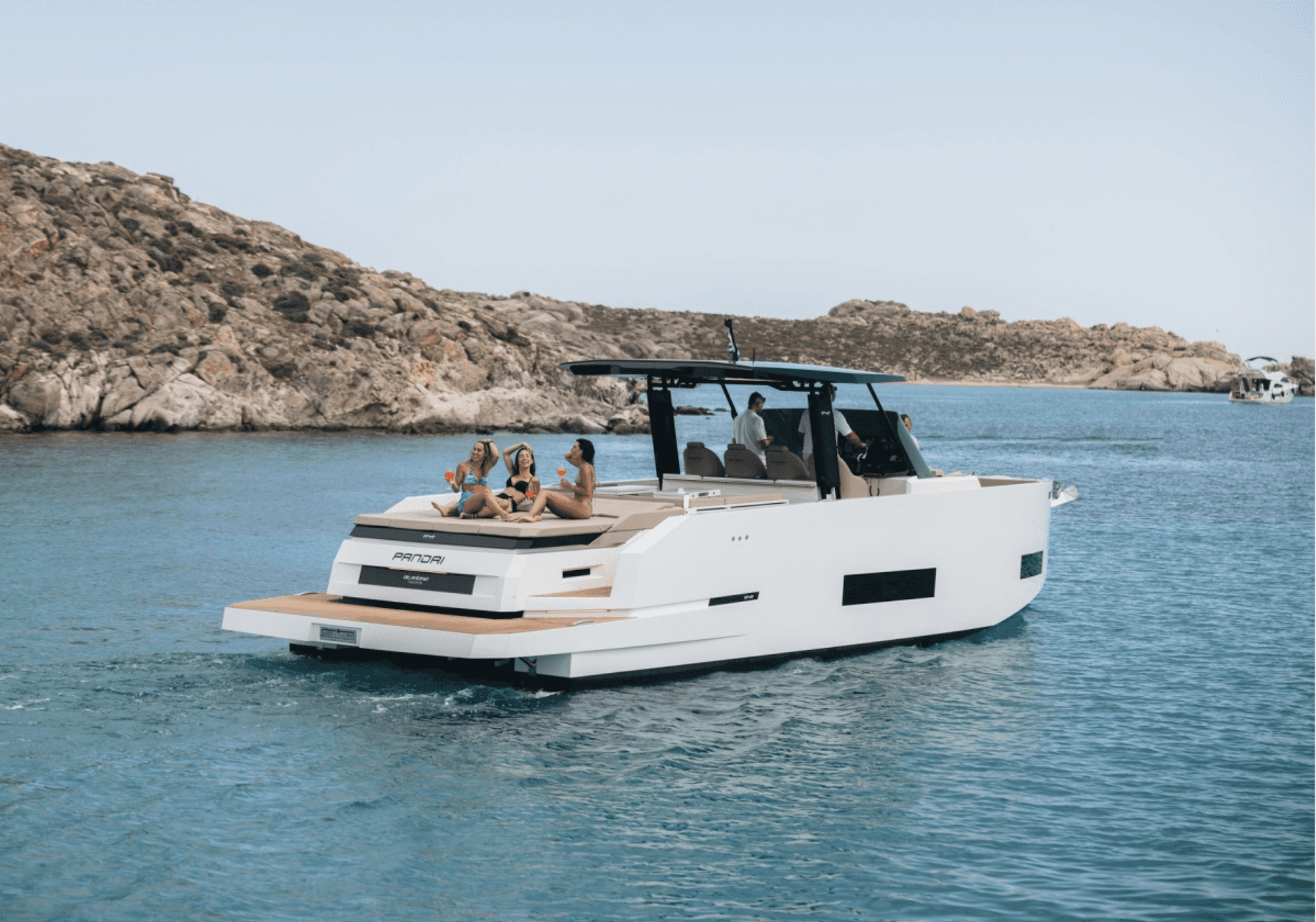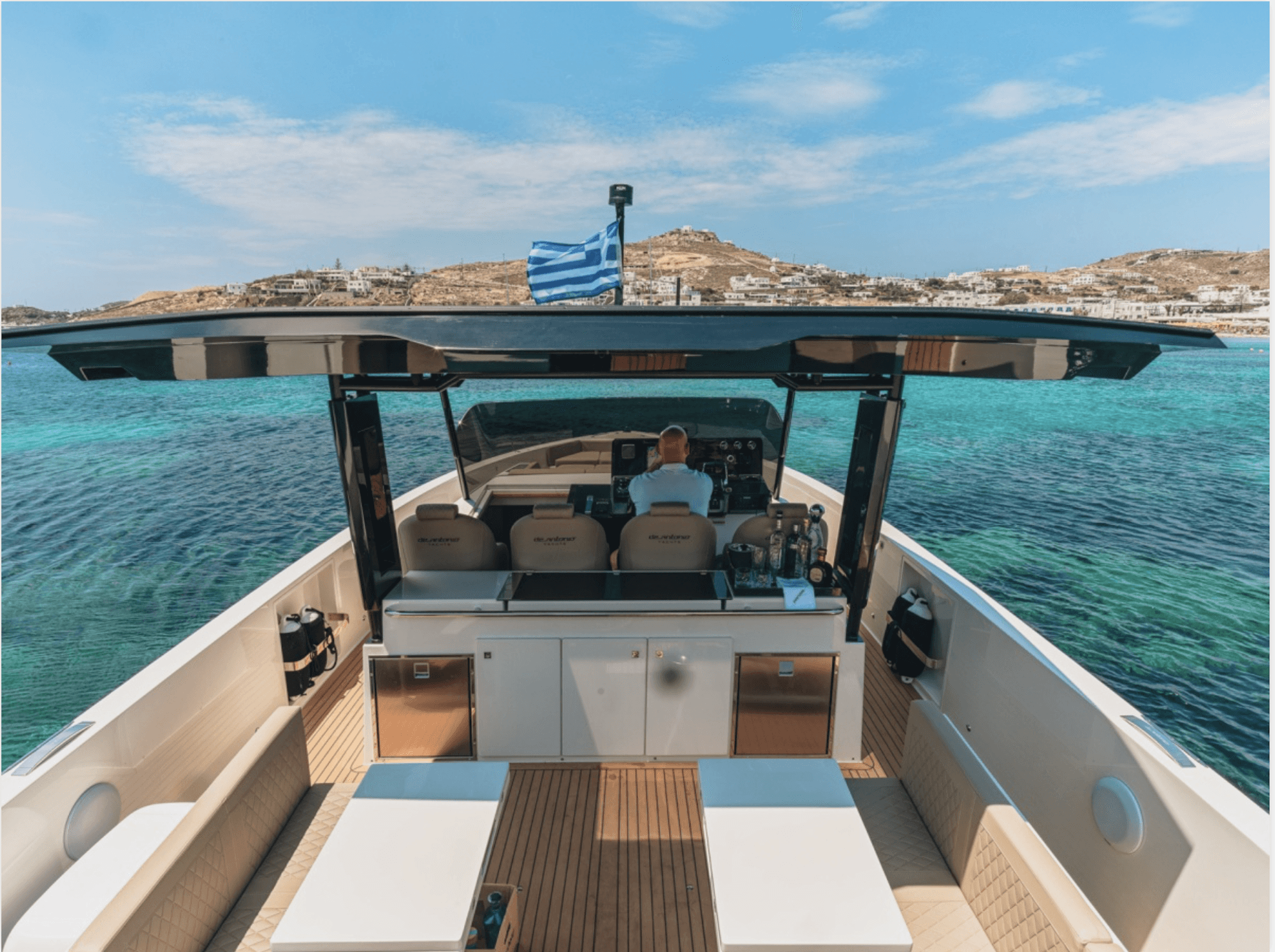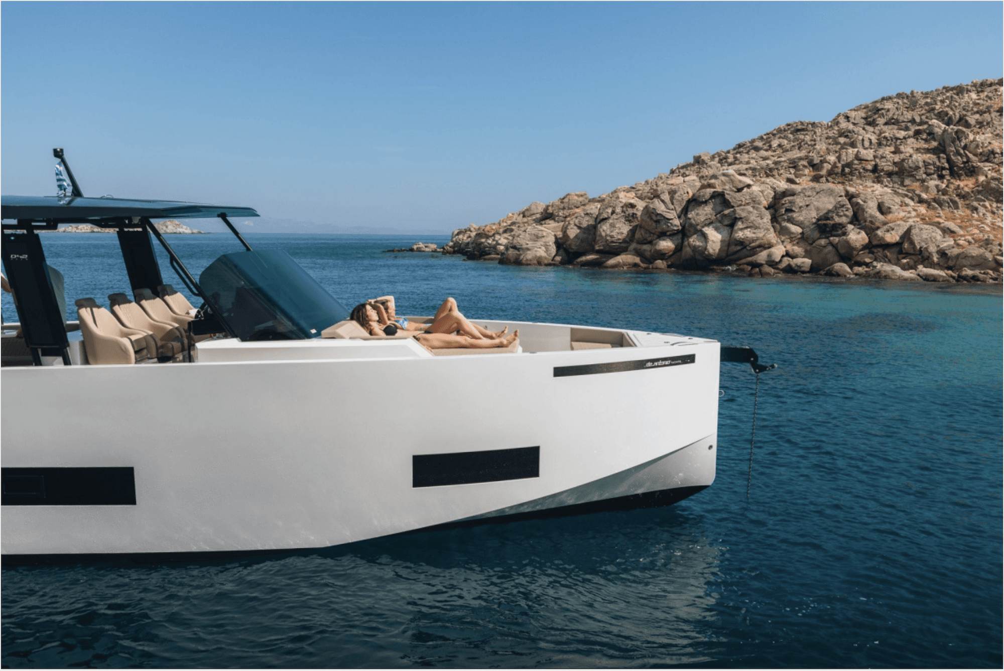 Glide across the Aegean's crystal-clear waters on our luxury D42, a 13-meter cruiser designed for both performance and pleasure. With its sleek walk-around layout and expansive sunbathing areas, this yacht invites you to relax in style and comfort.